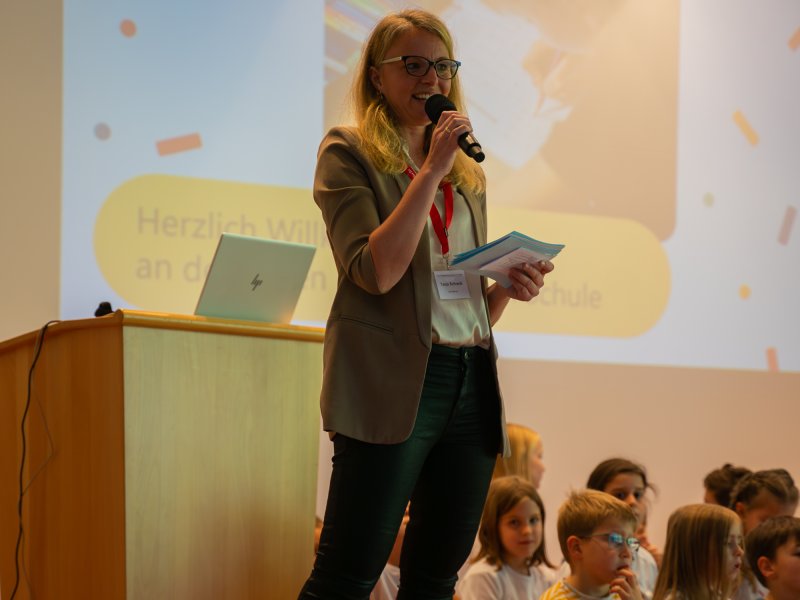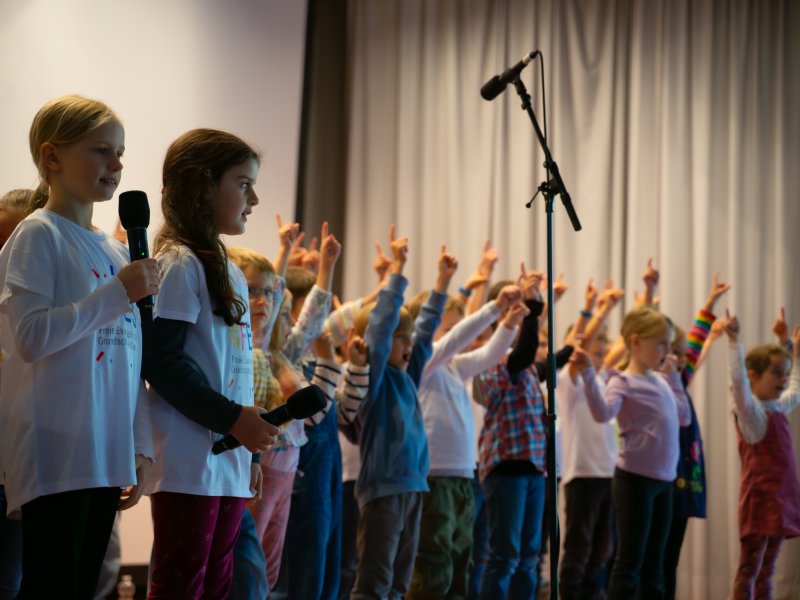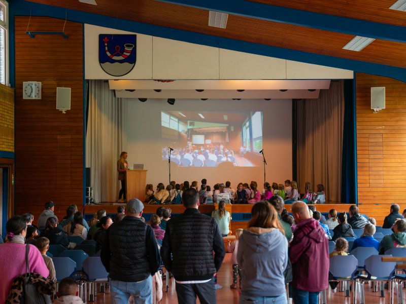 Das Bühnenprogramm wurde von unserem Schulchor unter der Leitung von Rebekka Vöhringer stimmungsvoll begleitet und sorgte für musikalische Farbtupfer. Engagierte Eltern – besonders aus der ersten Klasse – sowie unser motiviertes Mitarbeitenden-Team standen den interessierten Familien Rede und Antwort.